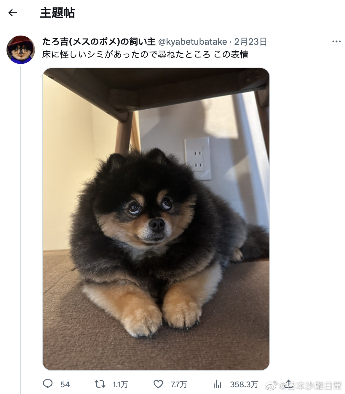地板上有可疑的污渍,问狗子这是怎么回事的时候,狗子是一幅这个表情。问了好多遍,狗子始终坚称它不知道,只是表情自始至终都很可疑。