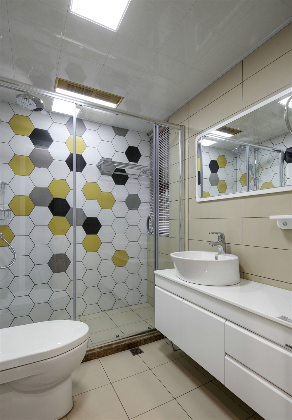 淋浴室墙面选用彩色蜂窝形瓷砖,颇有特色。