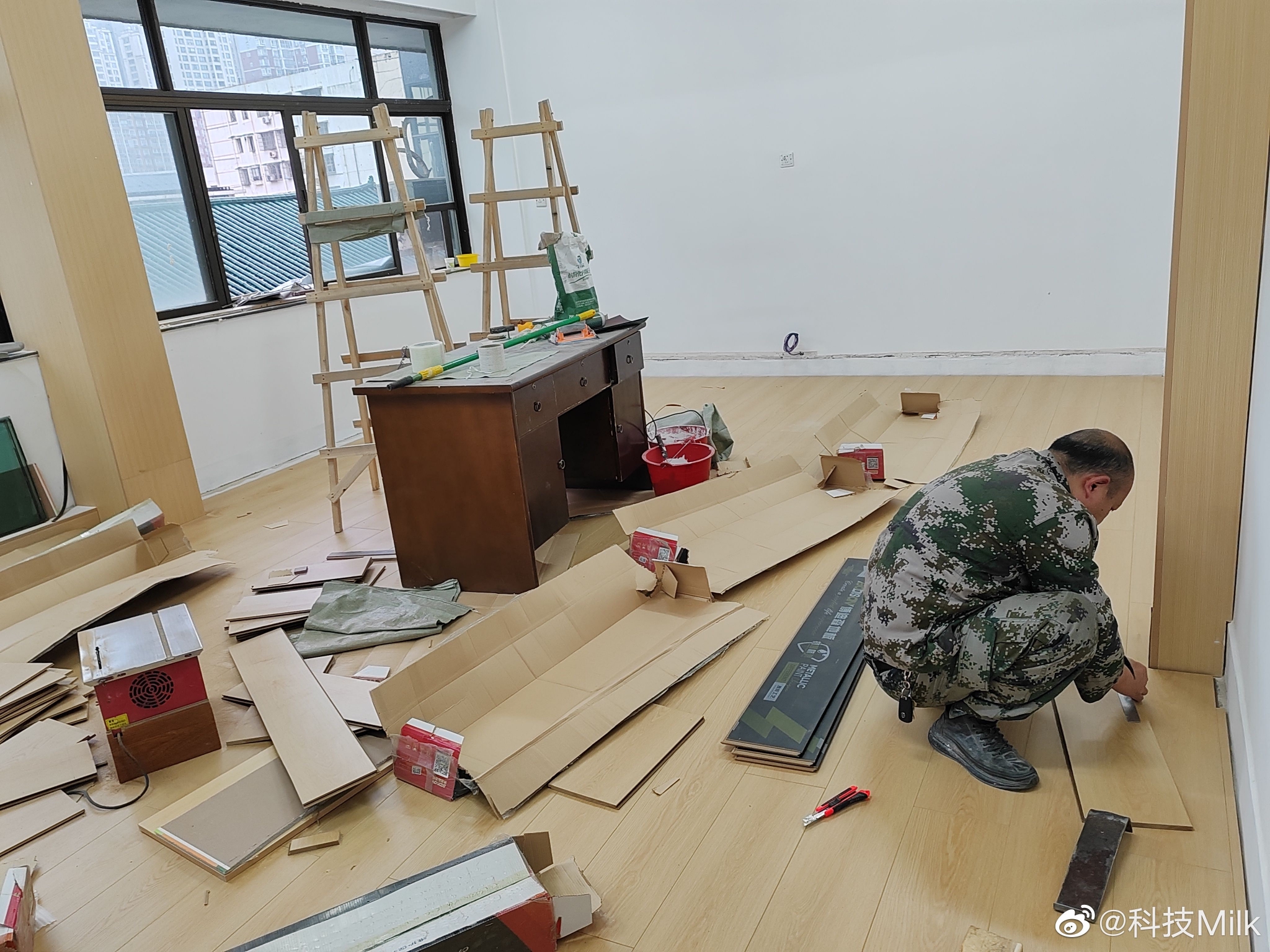 搞错地板颜色后,施工方赶紧更换过来了。铺了木地板后这屋子明显看起来舒服很多了,等摆满了家具家电,这个景就很好看了。