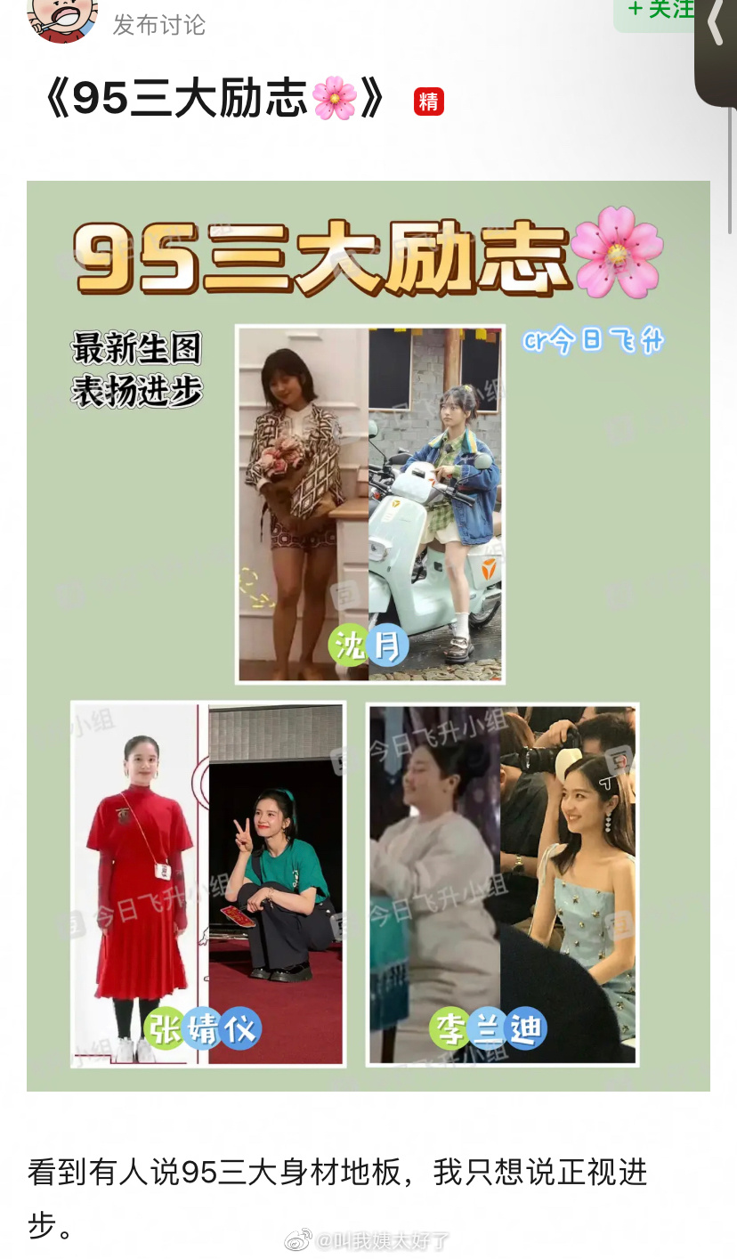 网友总结的95三大励志?,称虽然被说是95三大身材地板,但比原来进步很多了,大家怎么看?