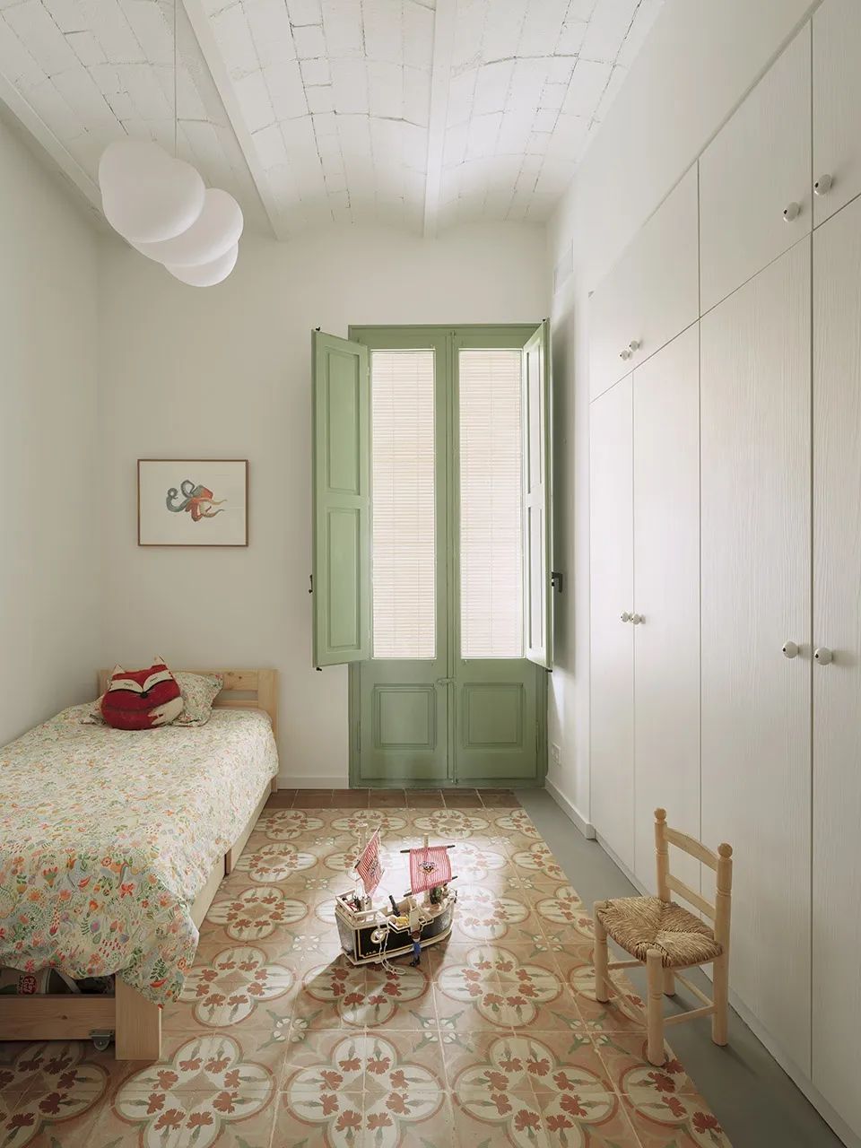 花砖地板、复古绿门框和奶油蓝墙砖...超舒适的小而美住宅!