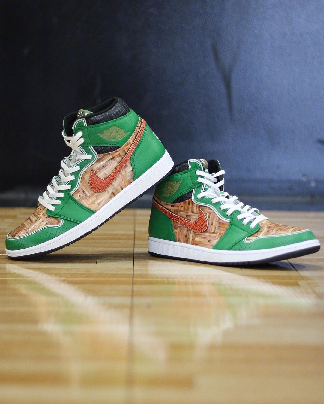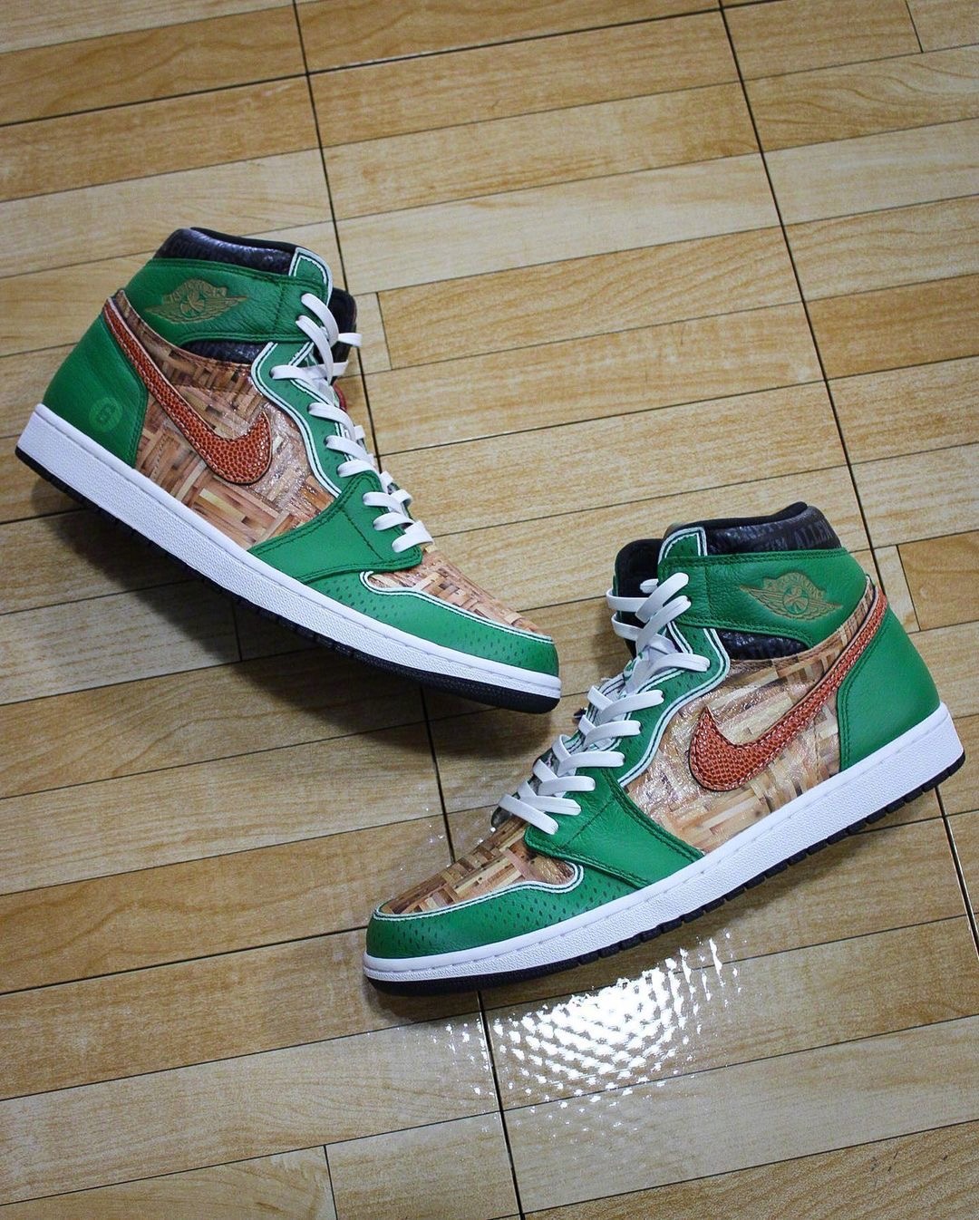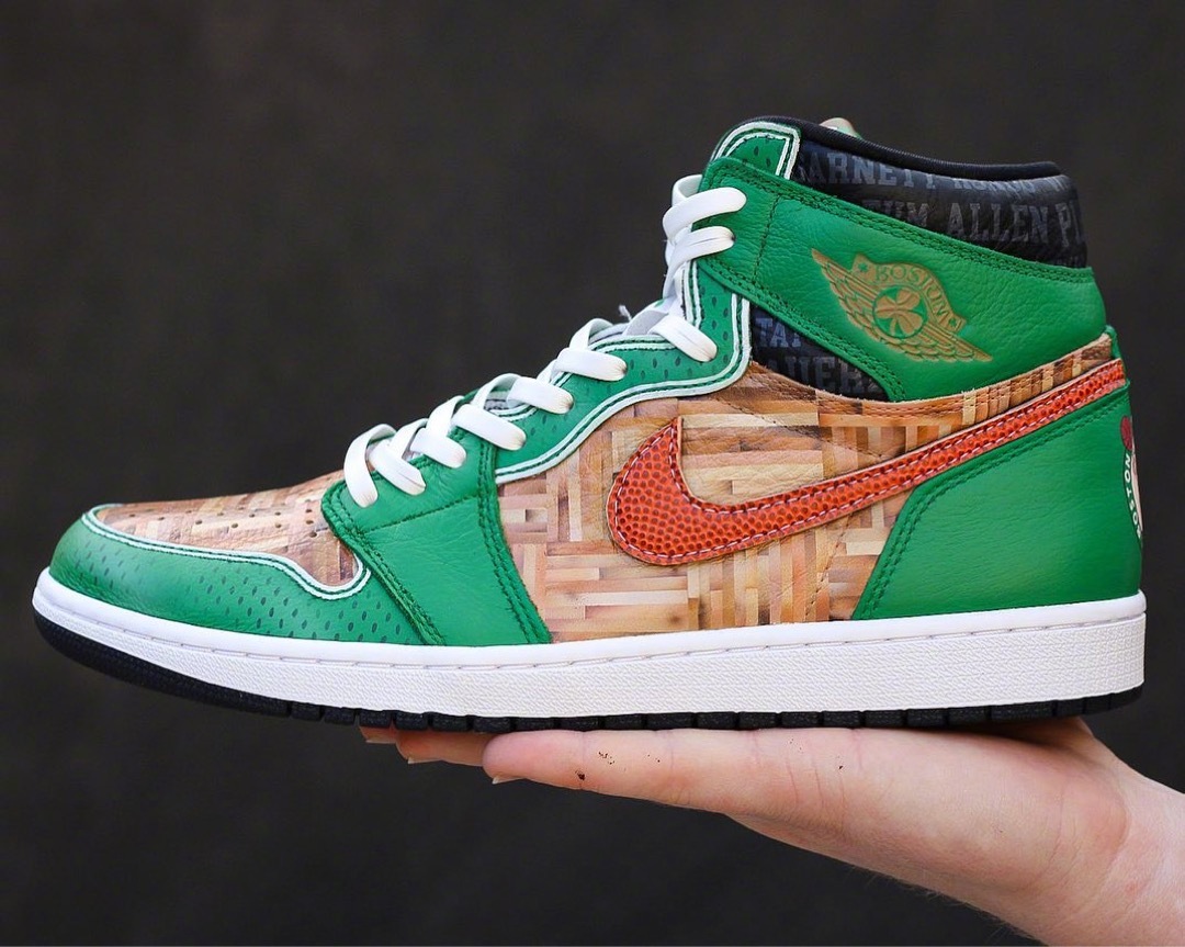 提到关于波士顿凯尔特人的特色,TD花园的橡木地板属联盟独一档。比尔·拉塞尔(6)统治的三秒区、队史功臣的姓氏、篮球皮纹Swoosh、复古球衣网眼与螺纹元素,都在这双Air Jordan 1鞋身上得以体现。